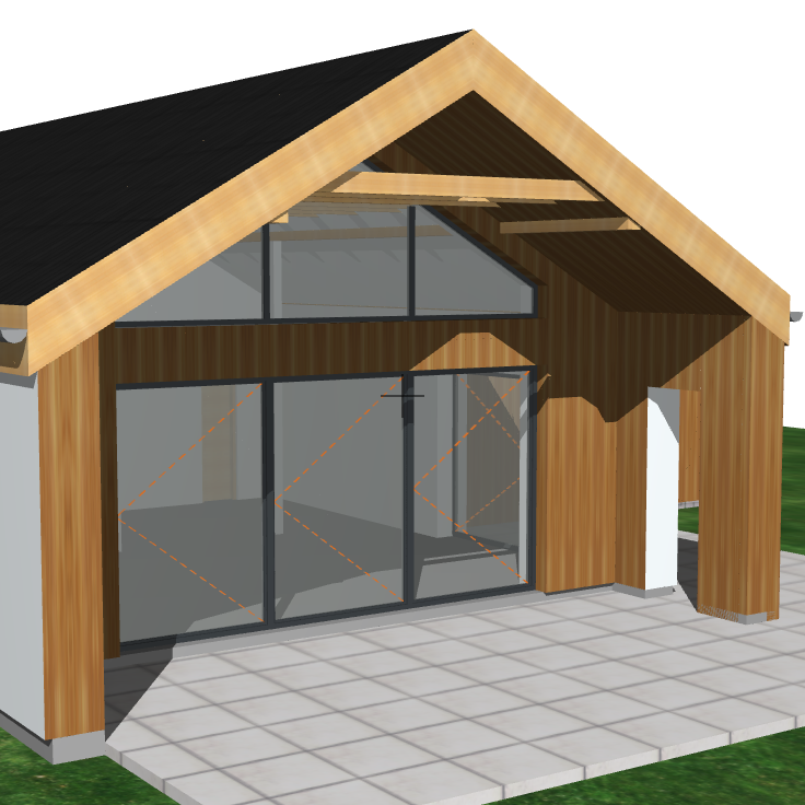 Objekt je dostatečně prosvětlen plastovými okny s trojitým zasklením v antracitovém odstínu, a to zejména ze západu a jihu. Jižní fasáda je prosklena velkoformátovými sestavami a plynule navazuje na venkovní terasu.